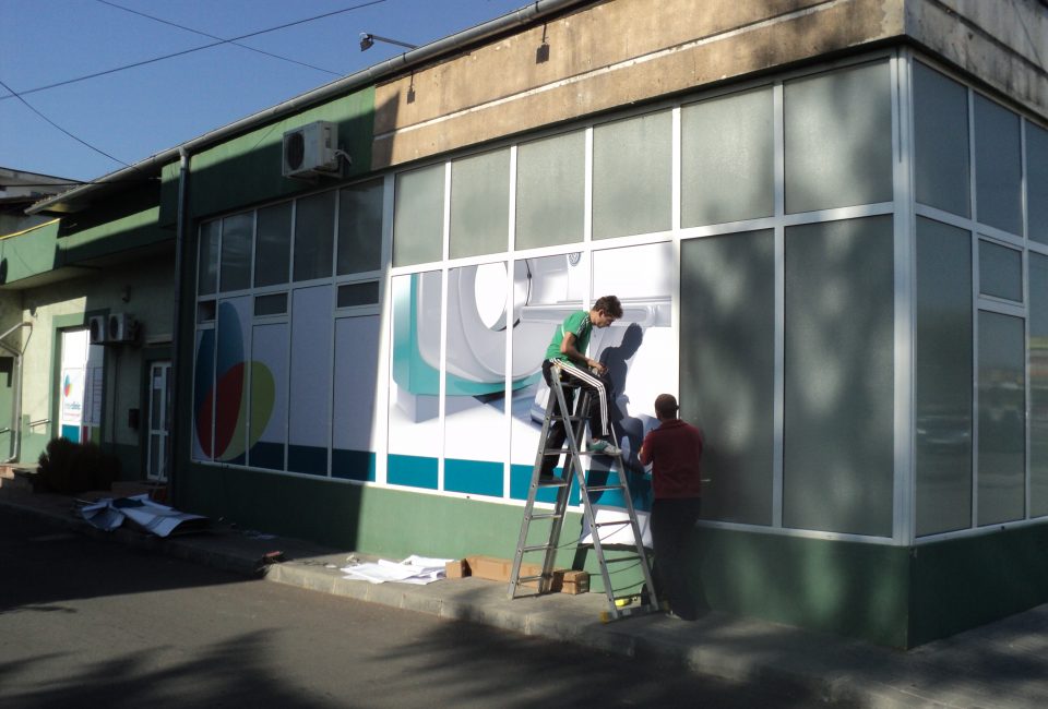 • colantare geamuri,inscriptionari vitrine,productie publicitara